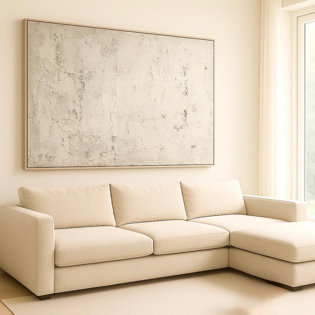 מדיה: מיקס מדיה-אקריל בגווני ב’ז בהיר, אפור בהיר, גוון לבן אופוויט ,גוון פשתן עם טקסטורה מובלטת , על 100% בד קנבס איכותי, מתוח על מסגרת עץ, מוכן לתלייה