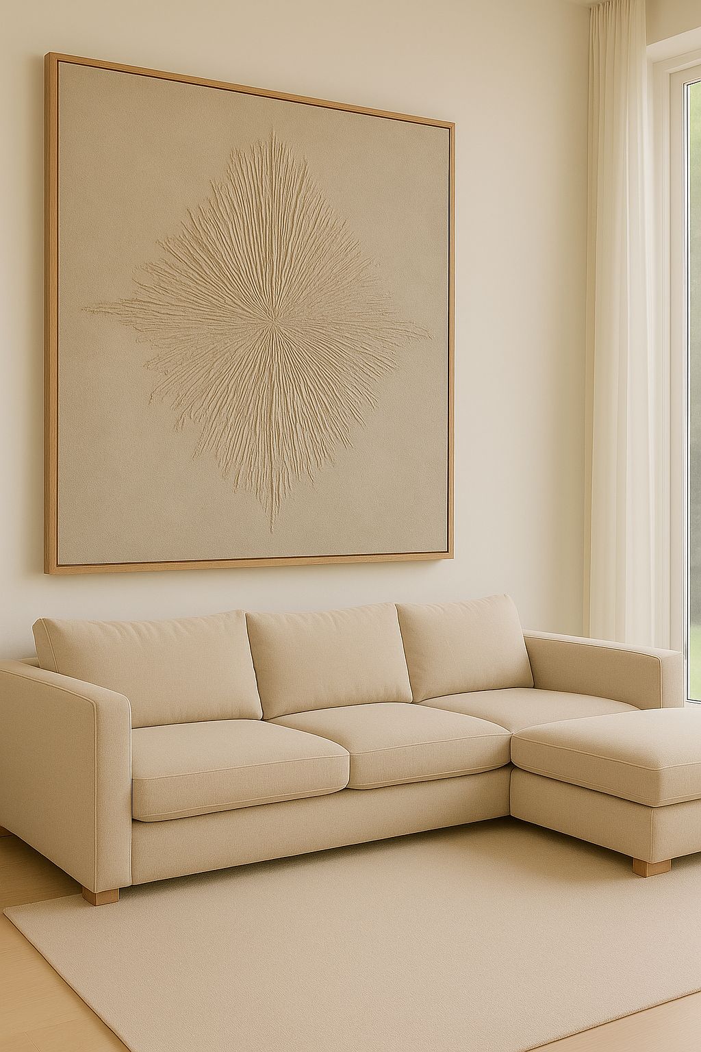 מדיה: מיקס מדיה-אקריל בשילוב 2 גוונים ב’ז בהיר /אופוויט ,גוון פשתן /בטון עם טקסטורה מובלטת , על 100% בד קנבס איכותי, מתוח על מסגרת עץ, מוכן לתלייה